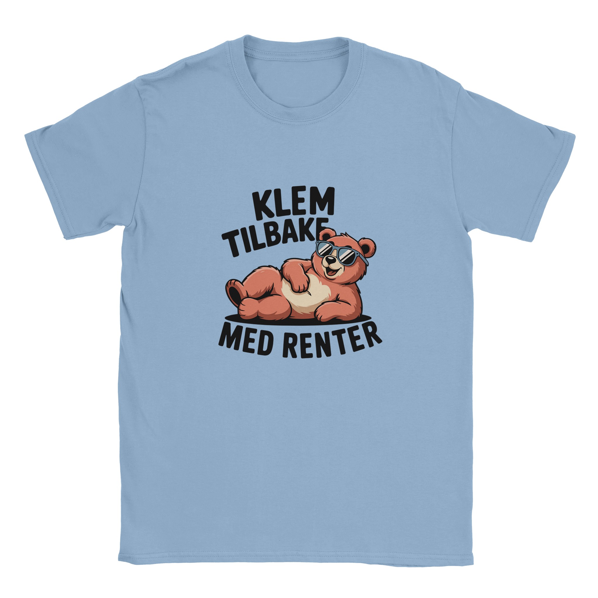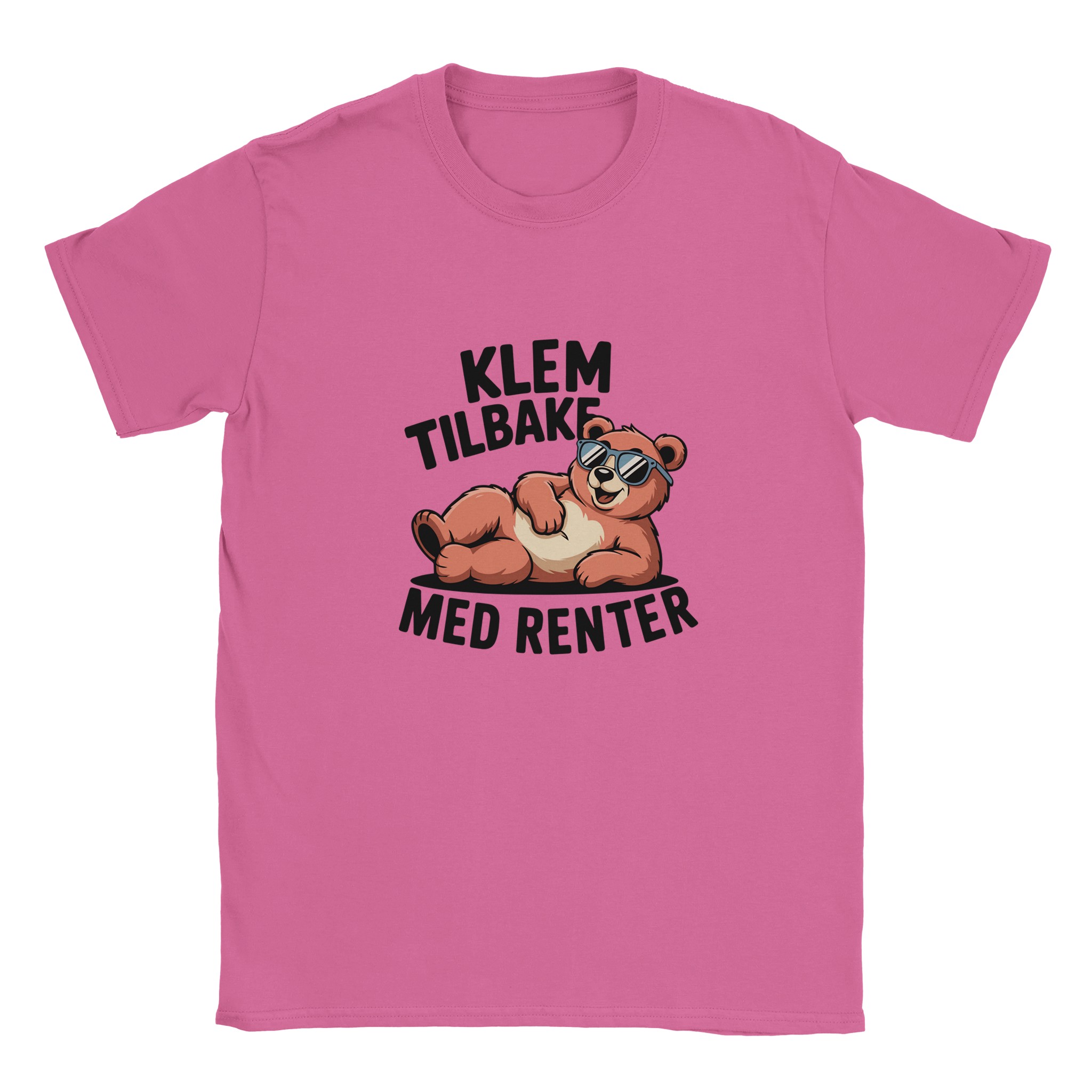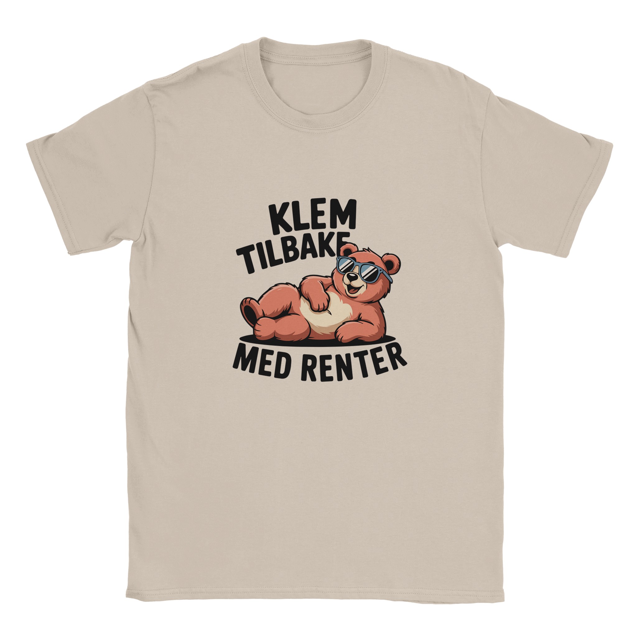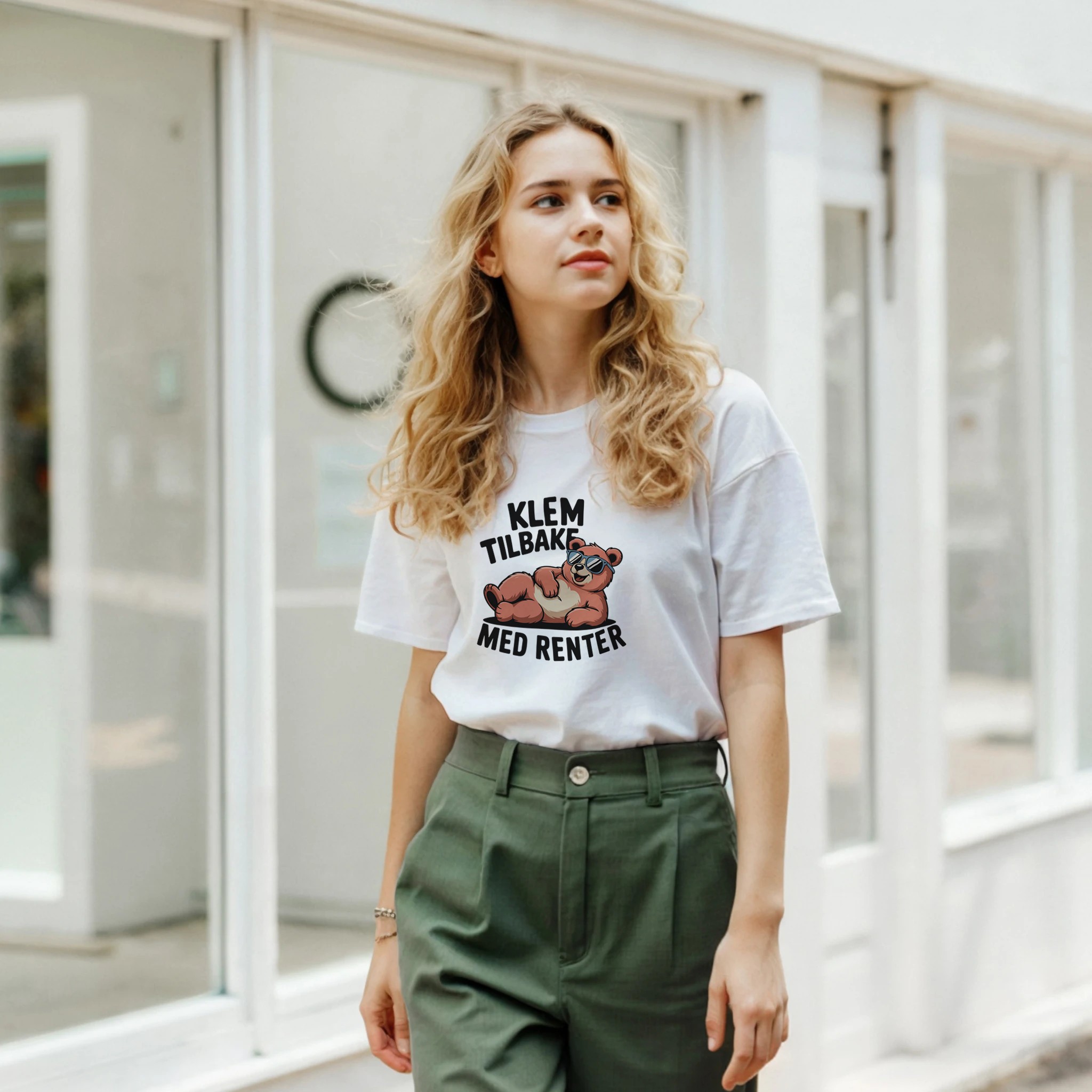 Denne t-skjorten er for deg som vil spre humor og varme på samme tid. Motivet viser en avslappet bjørn med solbriller og teksten «Klem tilbake med renter». En morsom og unik statement-tee som passer både til jobb, skole eller fritid.